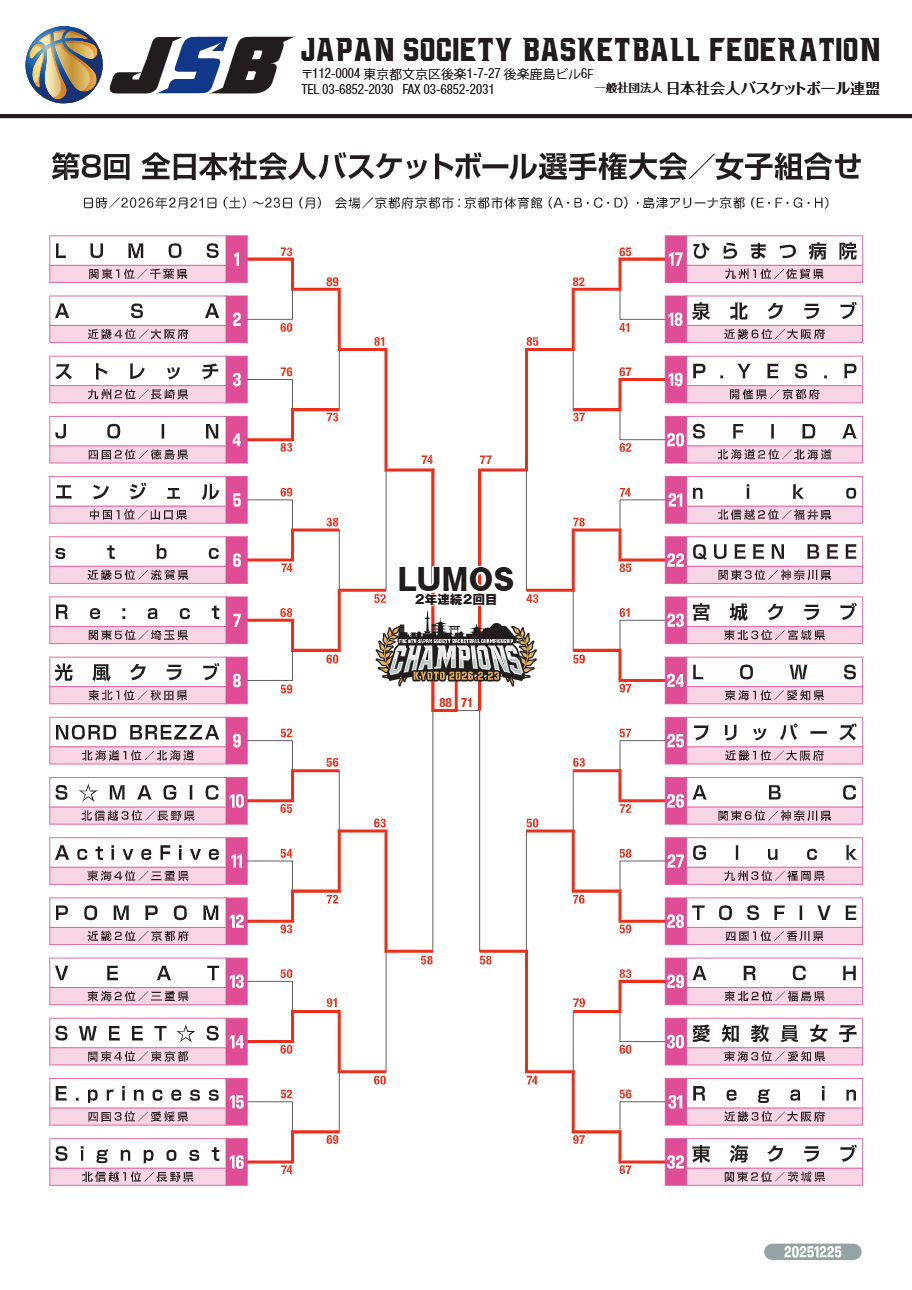 | 2025 高松宮記念杯 第7回全日本社会人バスケットボール プレミアムチャンピオンシップ 男子(JPEG) 女子(JPEG) |